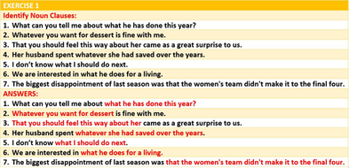 Worksheet noun clause examples with answers. Check spelling or type a new query. We did not find results for: Maybe you would like to learn more about one of these?